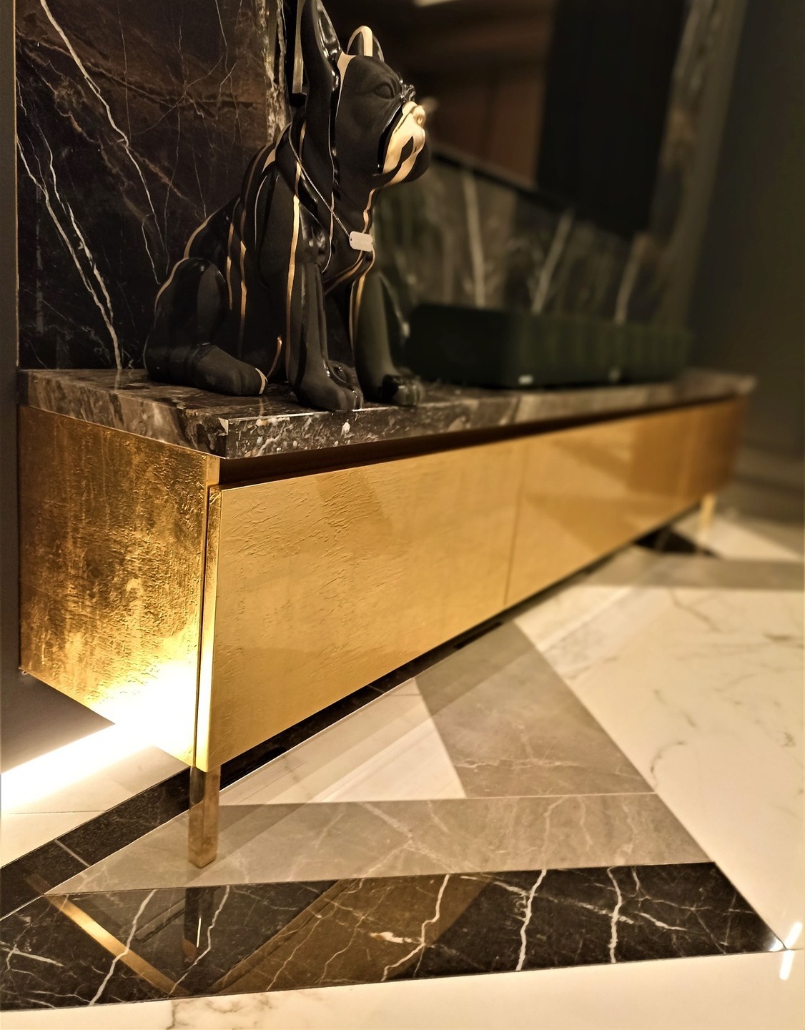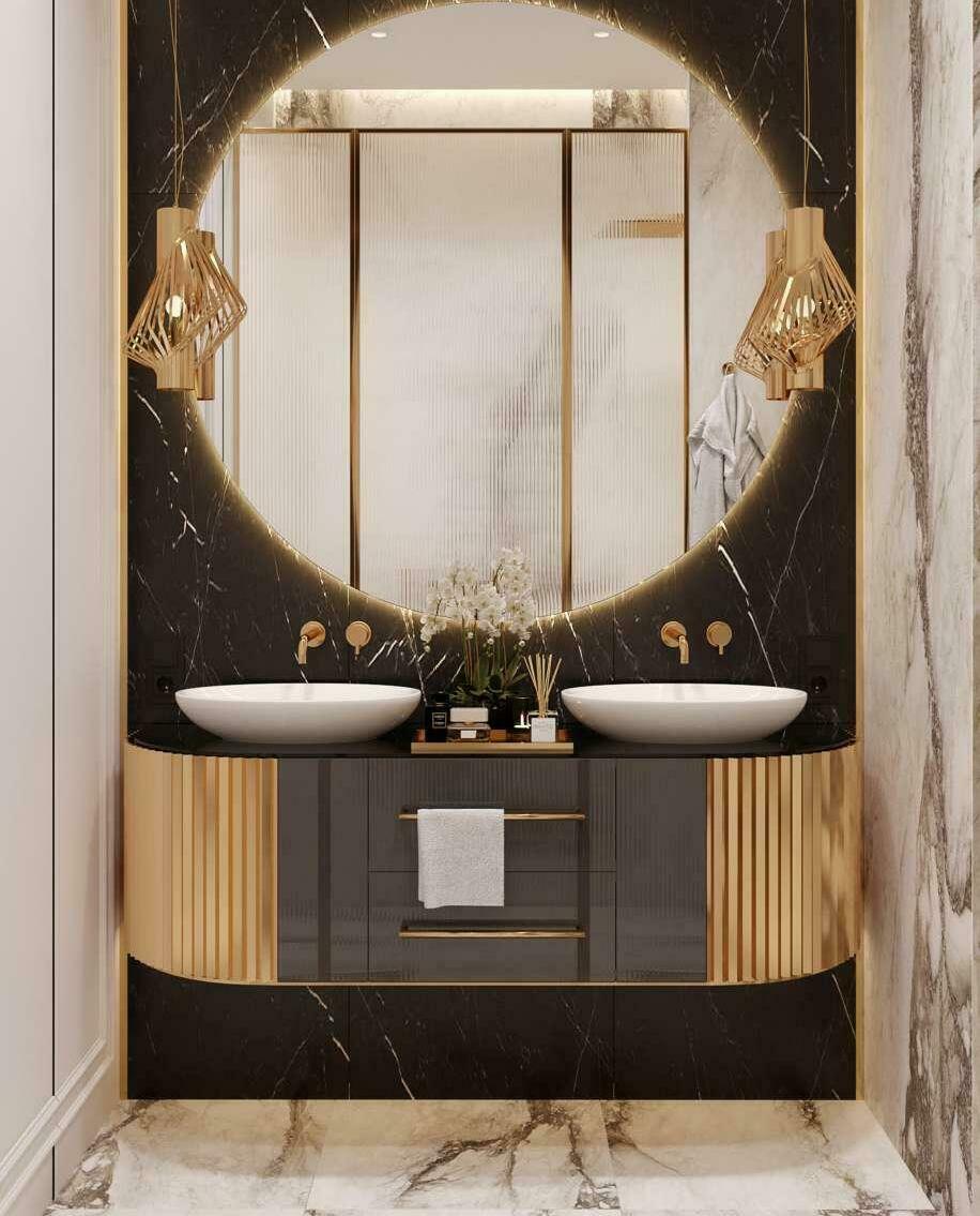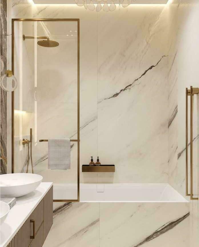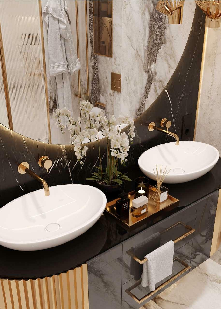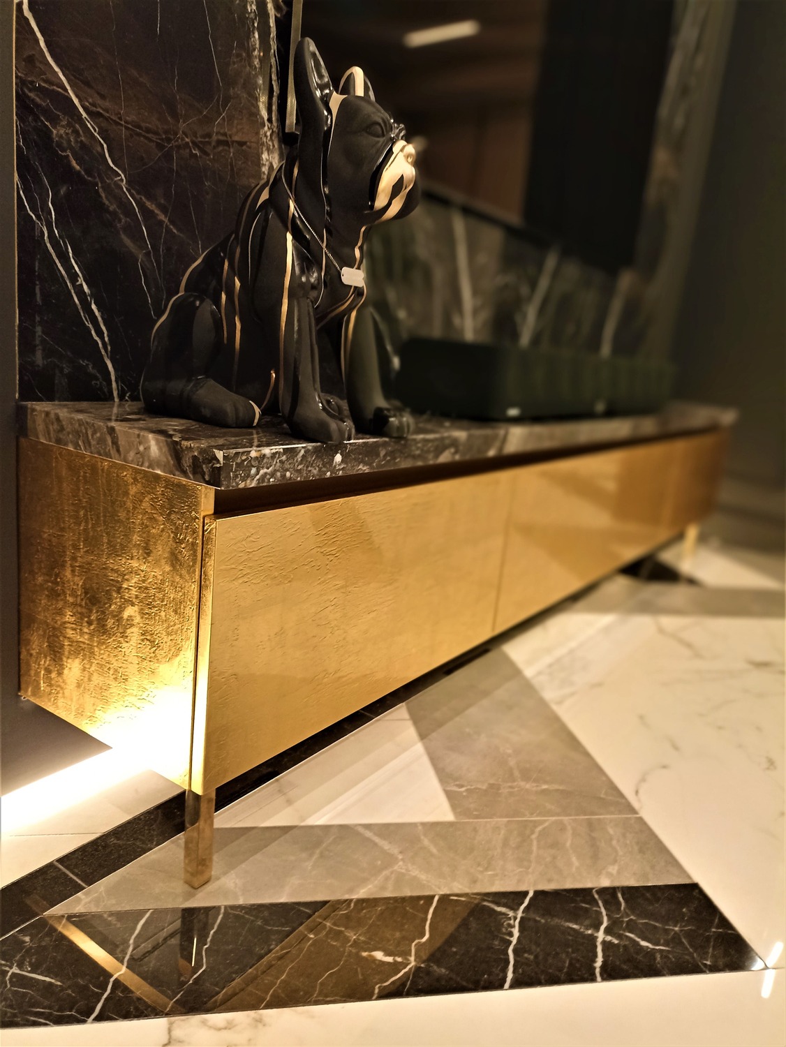 Мебель с использованием натурального камня идеально сочетается с металлами и деревом. Такая мебель красиво себя демонстрирует в ванных комнатах и позволяет грамотно обыграть