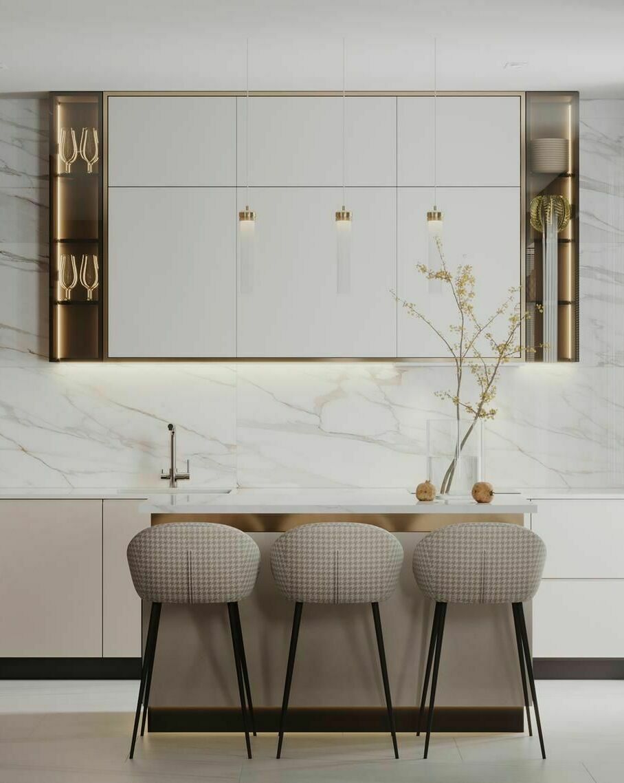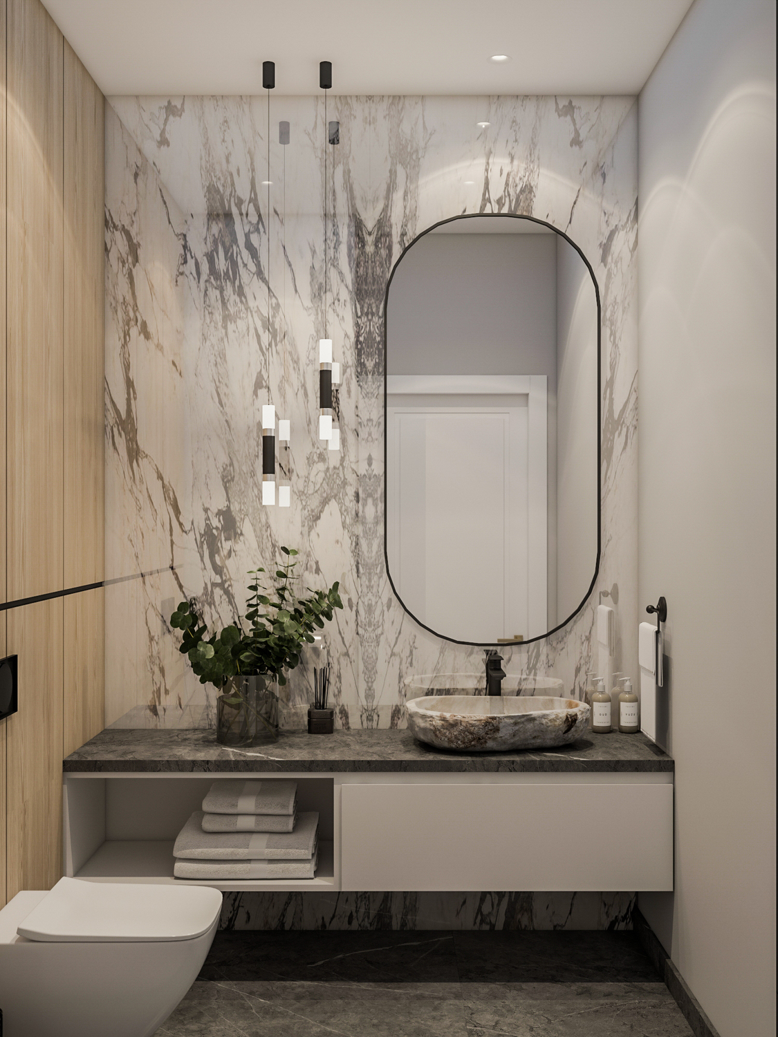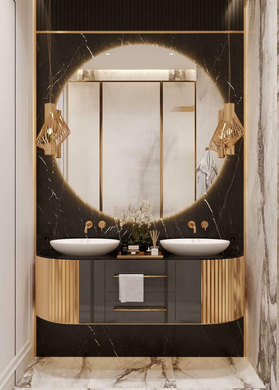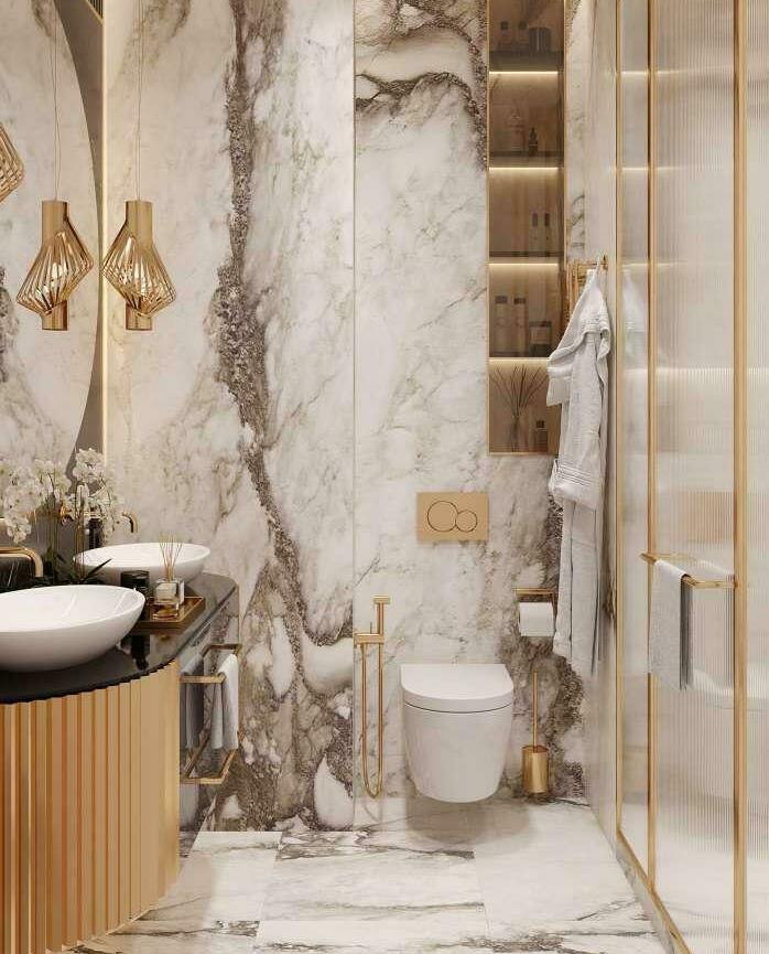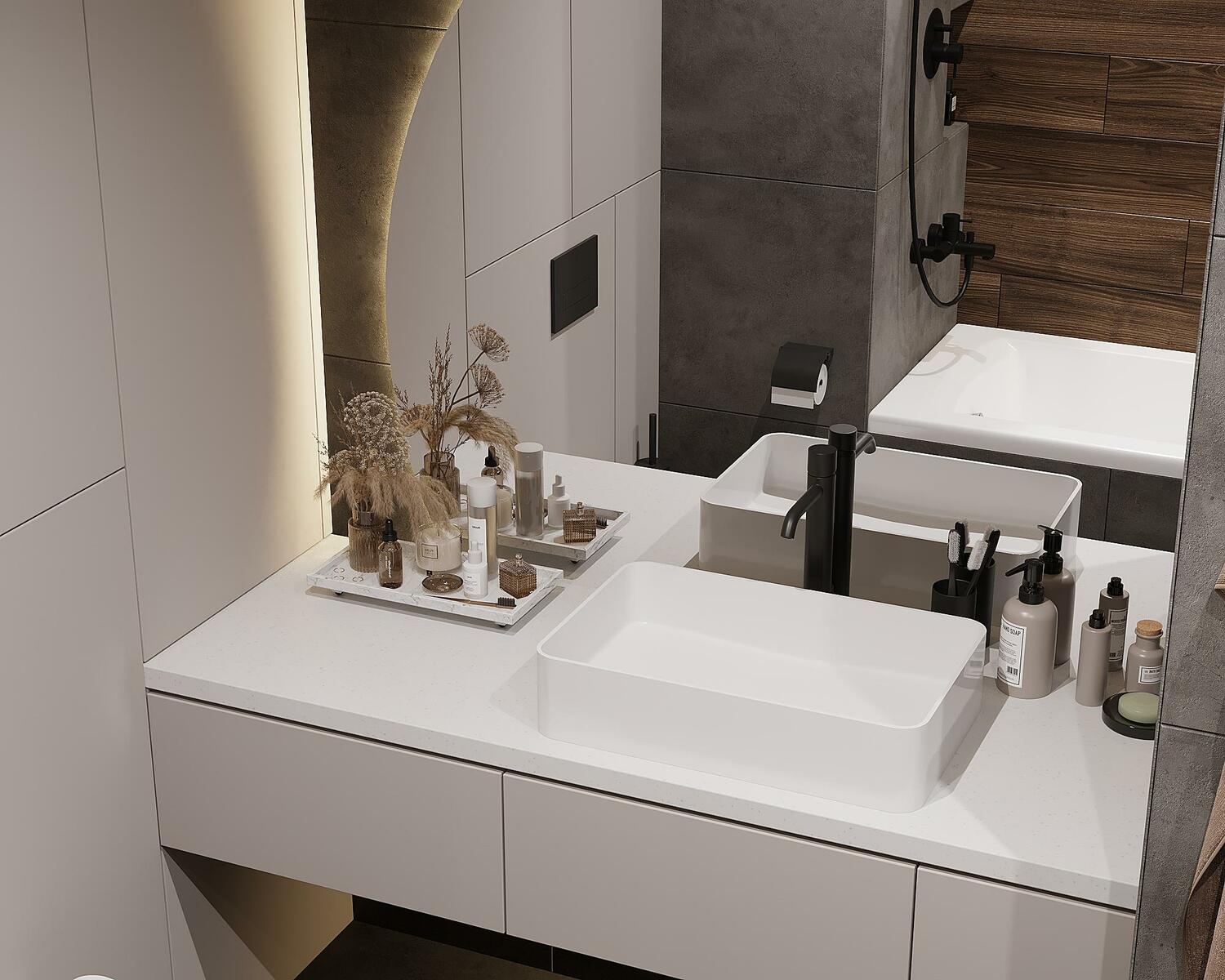 Мебель с использованием натурального камня идеально сочетается с металлами и деревом. Такая мебель красиво себя демонстрирует в ванных комнатах и позволяет грамотно обыграть