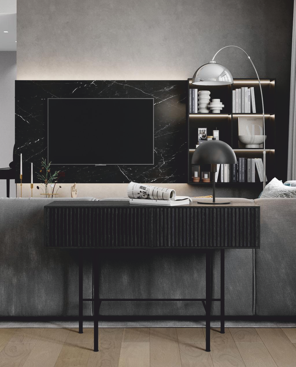 Металлическая мебель на заказ для гостиных, кухонь, кабинетов, спален, прихожих, детских, террас, торговых и офисных интерьеров, комбинированная элементами из массива, МДФ и стекла.